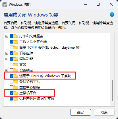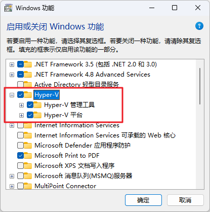 Hyper-V 是 WSL2 的底层依赖,必须先启用。