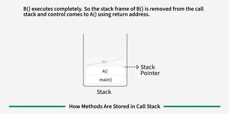 方法执行完毕后,弹出(pop) 该栈帧,控制权返回上层调用者