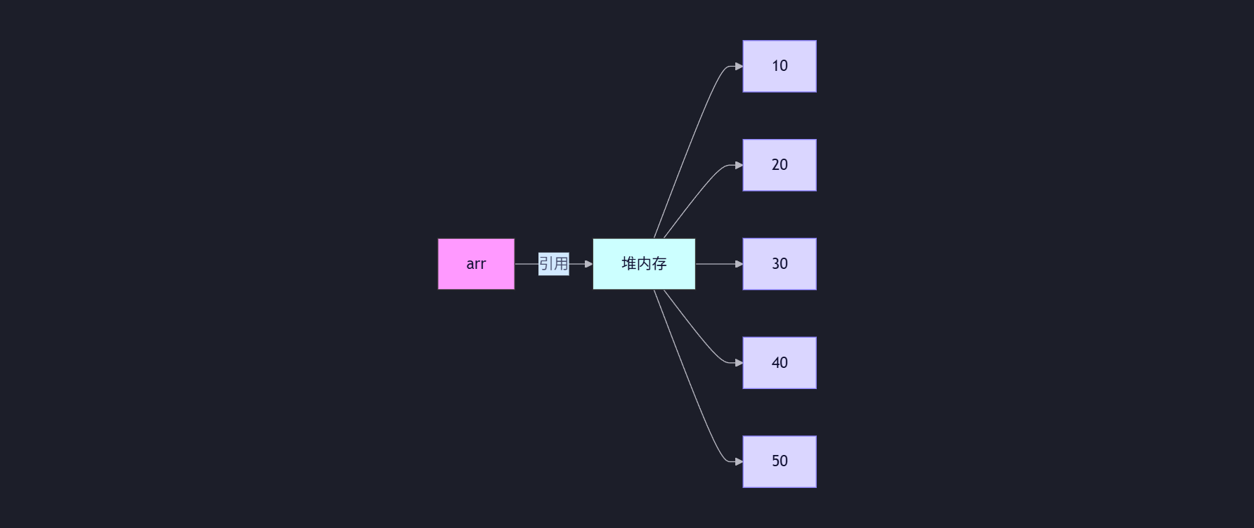 int[] arr = new int[5]; → 在堆中分配 5 个 int 的连续空间