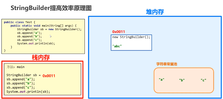 只创建一个 StringBuilder 对象,所有内容都往里面塞