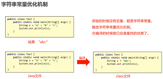 // 底层实现:new StringBuilder().append(s1).append("bcd").toString();直接 + 的方式拼接字符串:在内存中创建了很多对象,浪费空间,时间也非常慢
