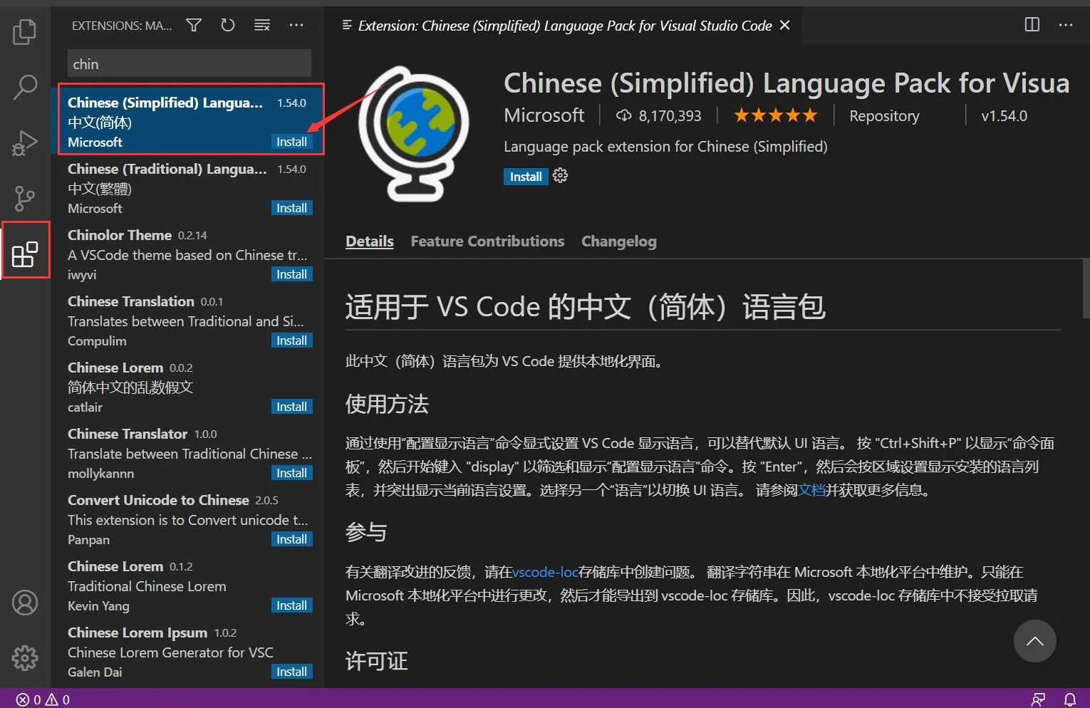 名称:Chinese (Simplified) Language Pack for Visual Studio Code