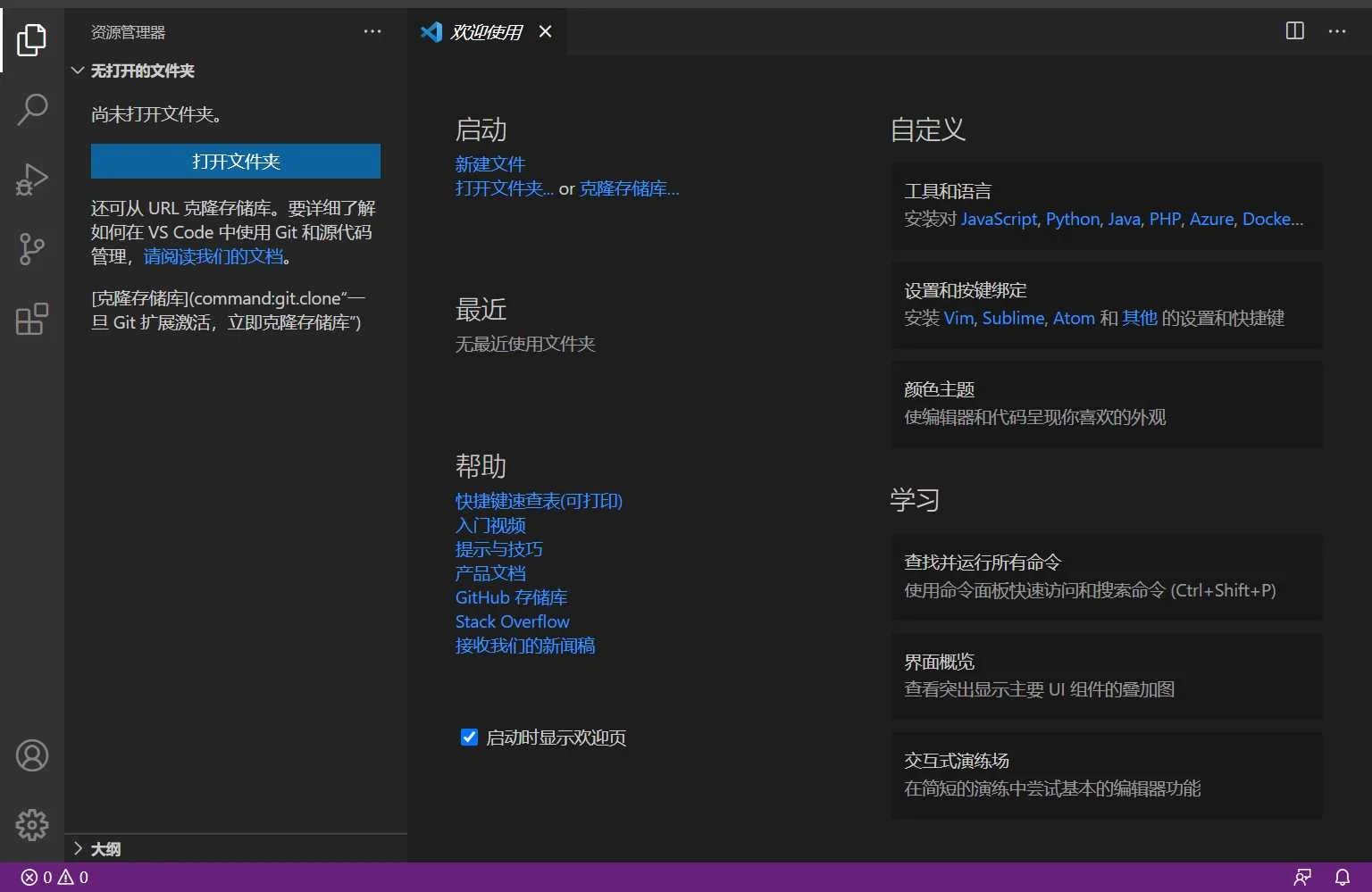 VSCode 默认为英文界面,可通过安装语言包切换为中文: