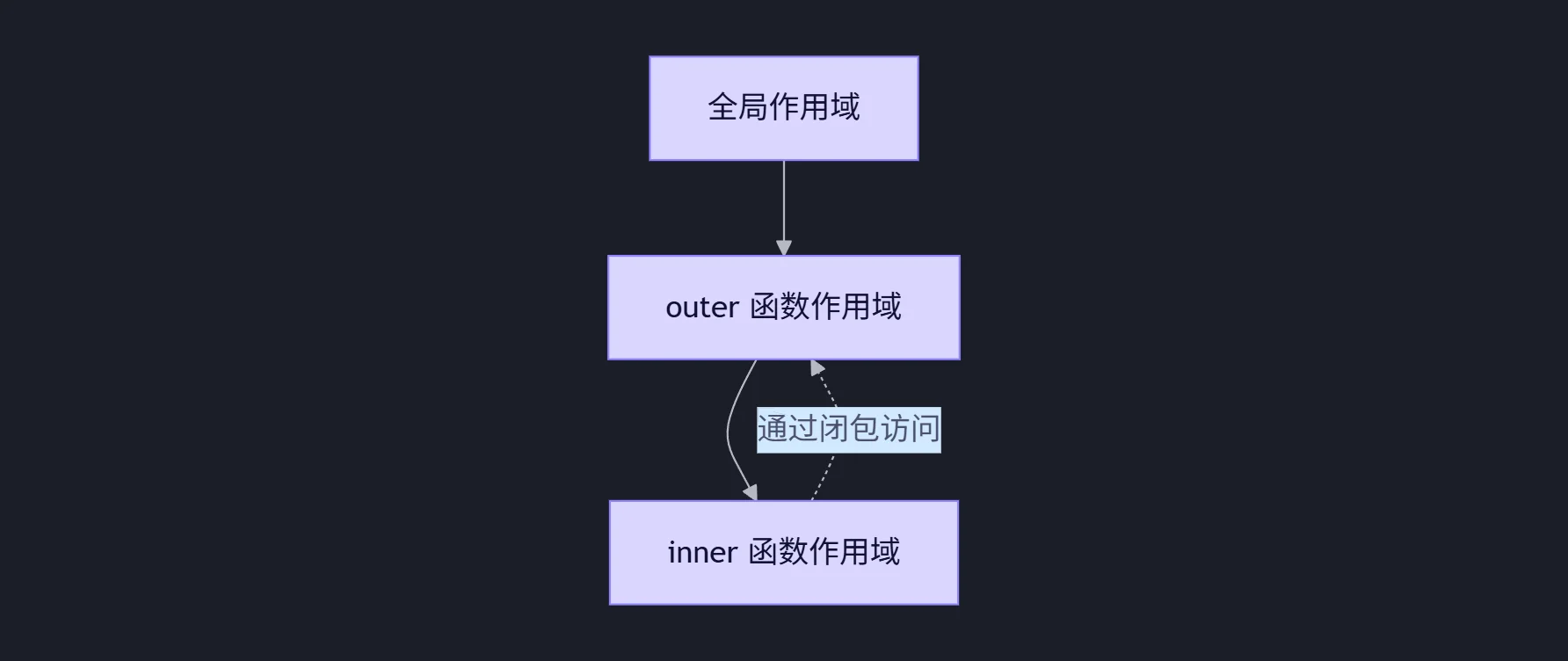 const closure = outer(); // outer() 执行完毕,但 inner 仍能访问 outerVar