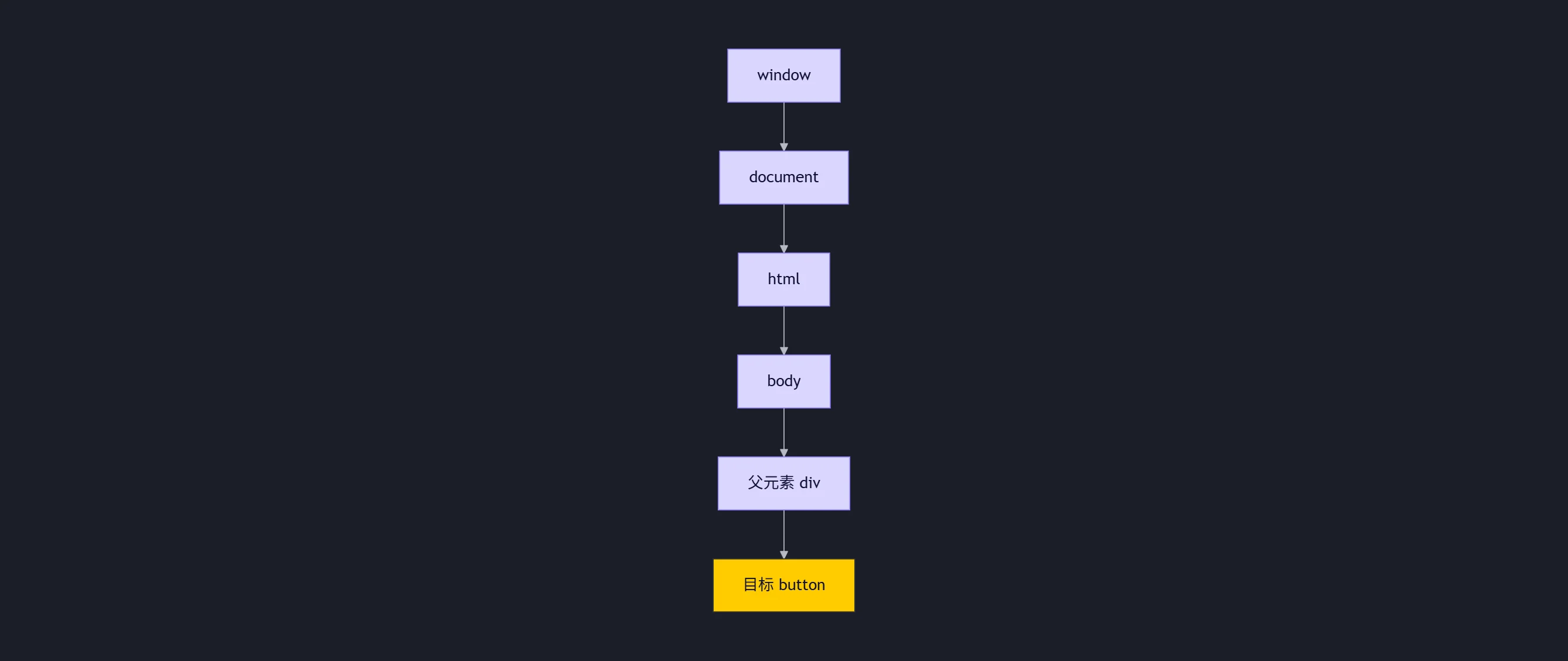 从根节点(window)向下传递到目标元素