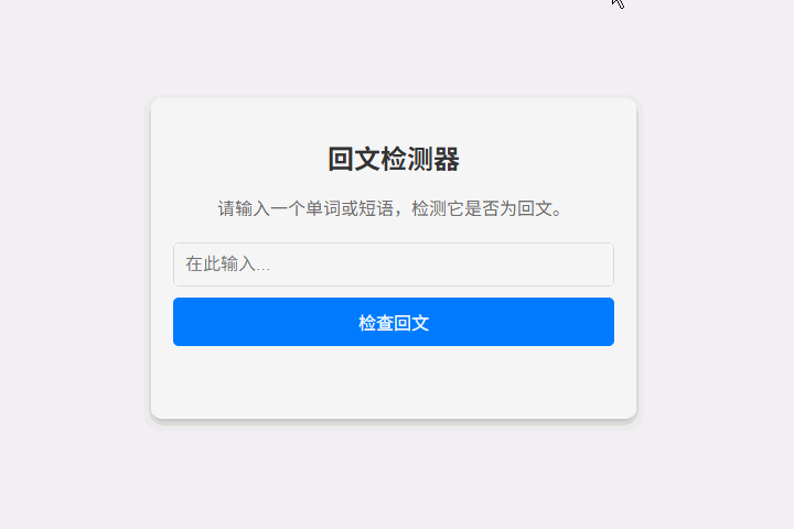 <p>请输入一个单词或短语,检测它是否为回文。</p>