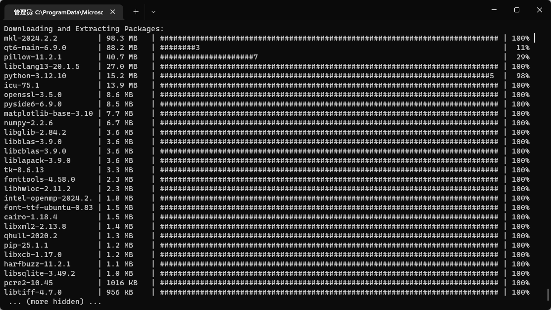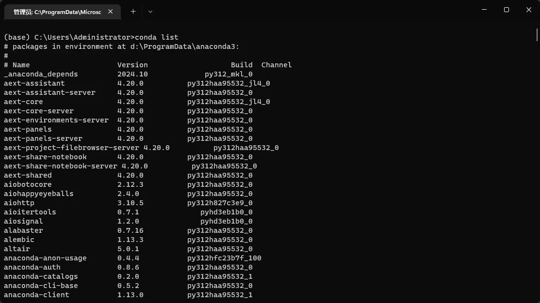 conda create --name myenv python=3.12 numpy matplotlib这将创建一个名为 myenv 的环境,并在其中安装 Python 3.12、NumPy 和 Matplotlib。在创建环境时,会有软件包列表的提示,输入 y 确认后即等待环境创建即可