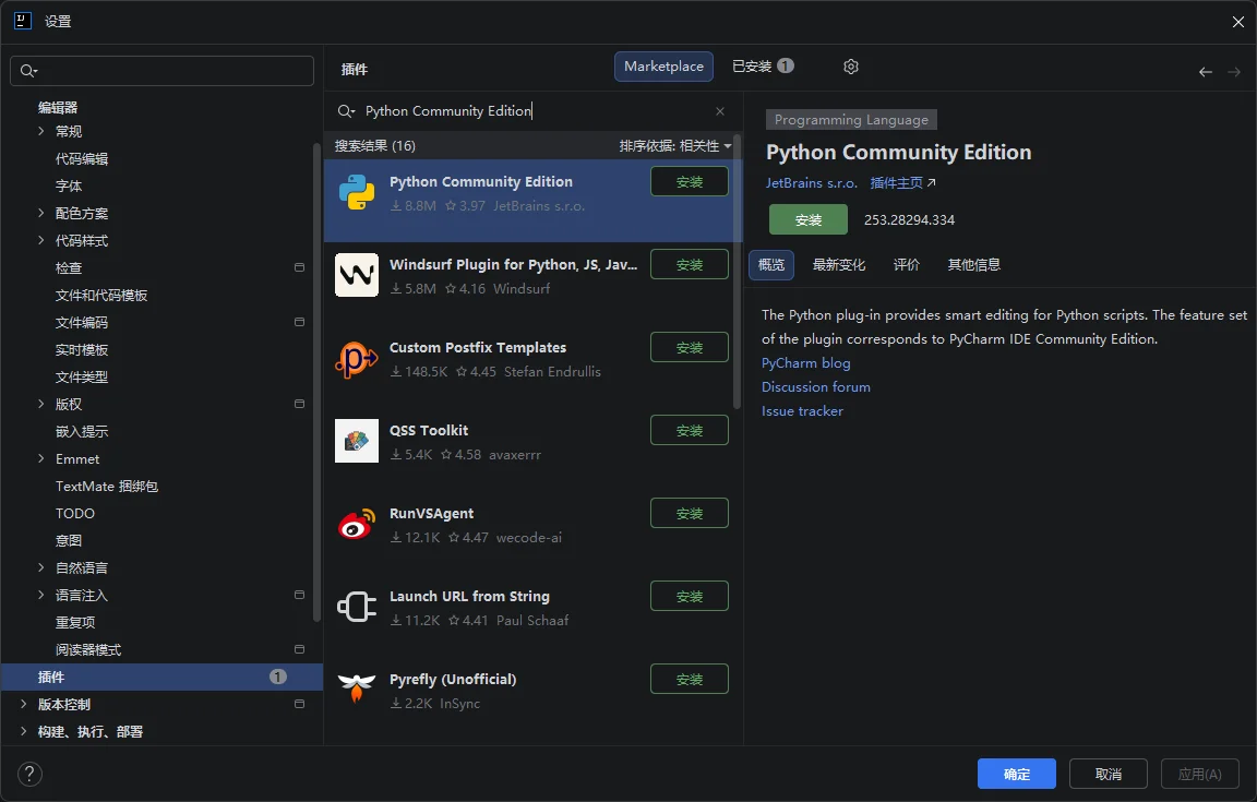 插件名称Python Community Edition