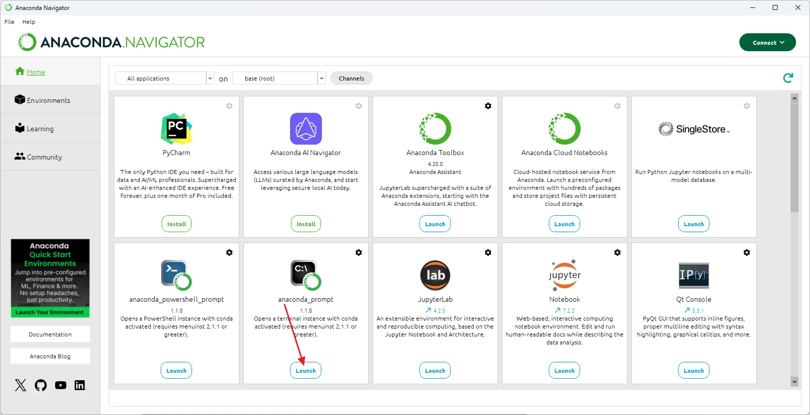 也可以通过 conda 控制台运行