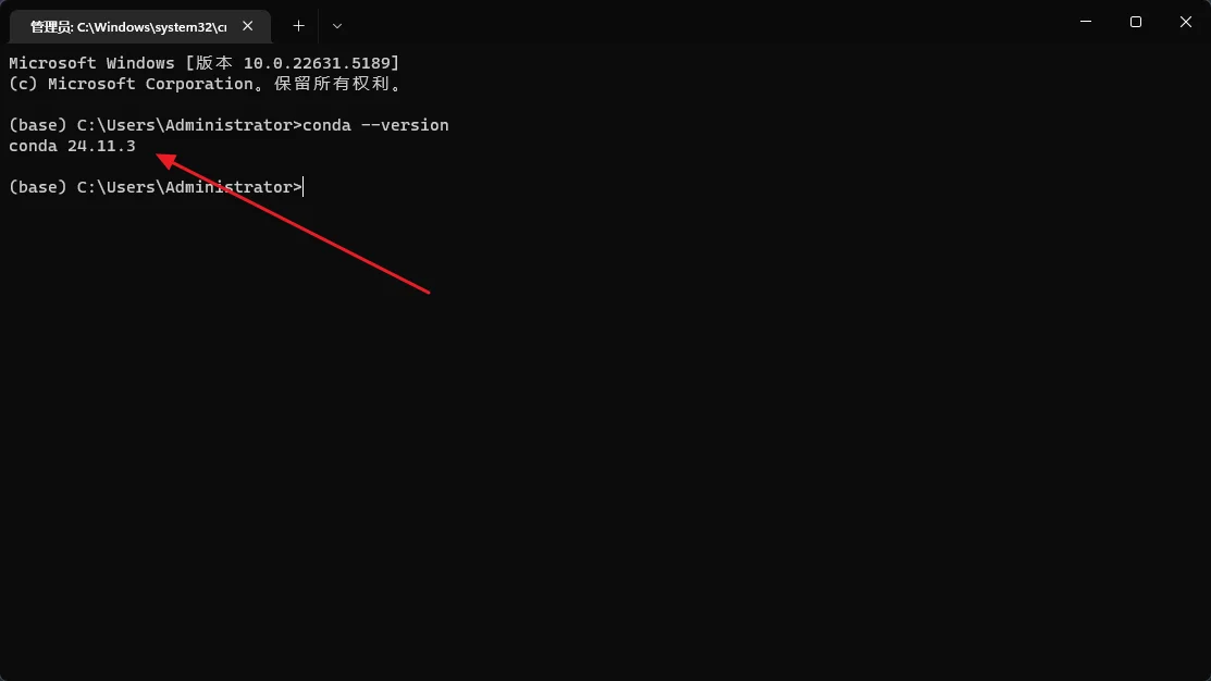 输入命令:conda --version