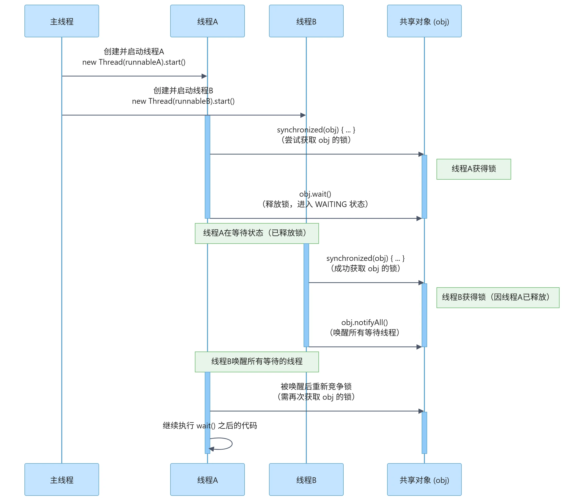 计时等待(Timed Waiting):调用 sleep()、带超时的 wait(timeout) 等方法后进入有限时间等待