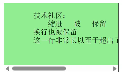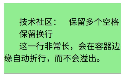 空格、换行均被保留,且长文本会自动折行以适应容器宽度,不会产生横向溢出。