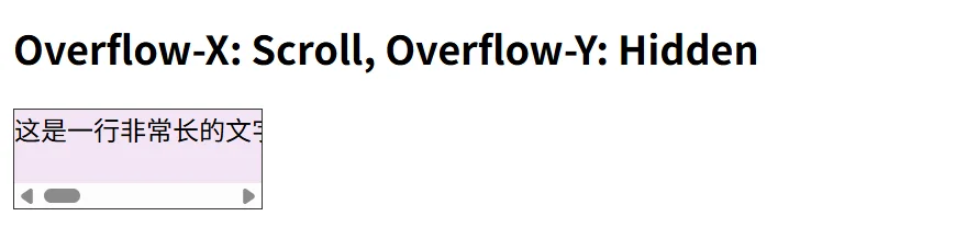 这是一行非常长的文字,它不会换行,而是通过横向滚动条来查看完整内容。垂直方向如果有溢出则会被隐藏。