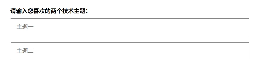 <label><strong>请输入您喜欢的两个技术主题:</strong></label><br>