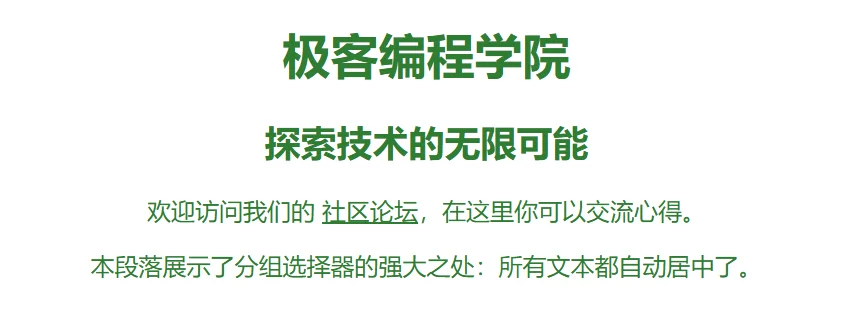 本段落展示了分组选择器的强大之处:所有文本都自动居中了。