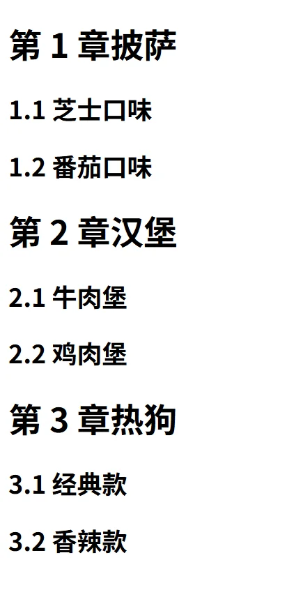 在复杂文档中,常常需要实现多级编号系统,例如 "第 1 章 1.1 节"、"第 1 章 1.2 节"、"第 2 章 2.1 节" 等。CSS 计数器支持创建多个独立运行的计数器,通过合理重置和递增,可以实现这种层次化编号。