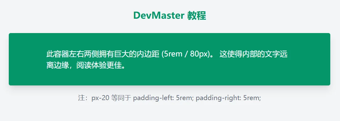 px-20 为容器左右两侧各添加了 5rem (约 80px) 的内边距。