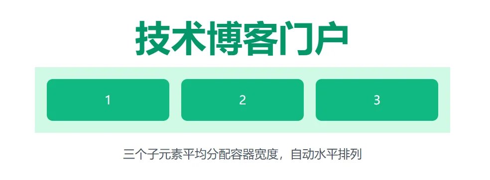 三个子元素平均分配容器宽度,自动水平排列