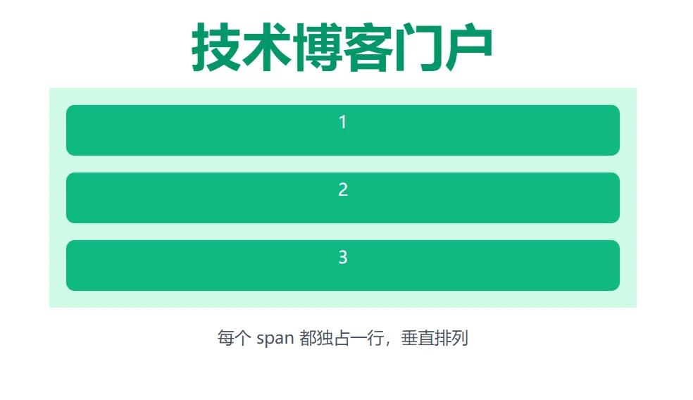 每个 span 都独占一行,垂直排列