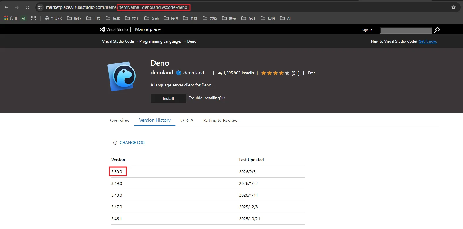 https://marketplace.visualstudio.com/_apis/public/gallery/publishers/denoland/vsextensions/vscode-deno/3.50.0/vspackage下载与安装: