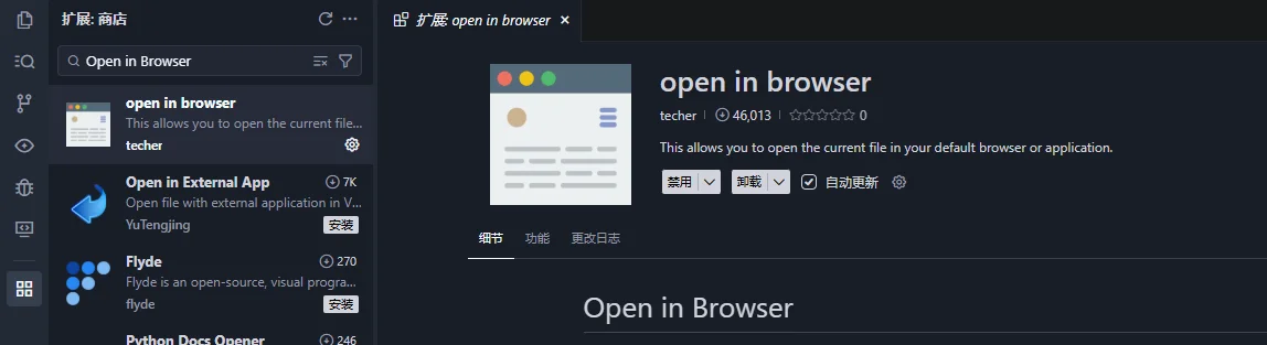 功能描述:允许您直接在默认浏览器(或指定浏览器)中打开当前的 HTML 文件。