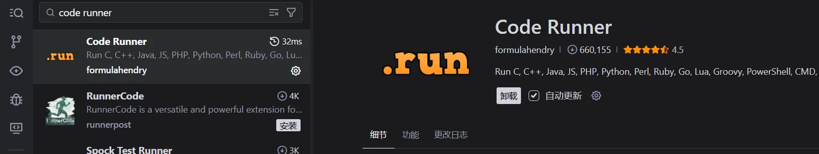 功能描述: 允许您通过快捷键、右键菜单或顶部按钮,一键运行当前文件或选中的代码片段,并支持超过 50 种编程语言(如 Python, C++, Java, JavaScript, Go 等),结果直接输出在输出面板或集成终端中