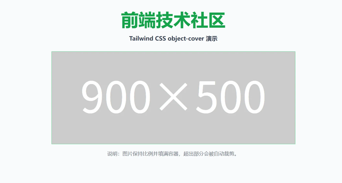 此示例演示了 object-cover 的效果。注意图片会被裁剪以填满整个绿色区域。