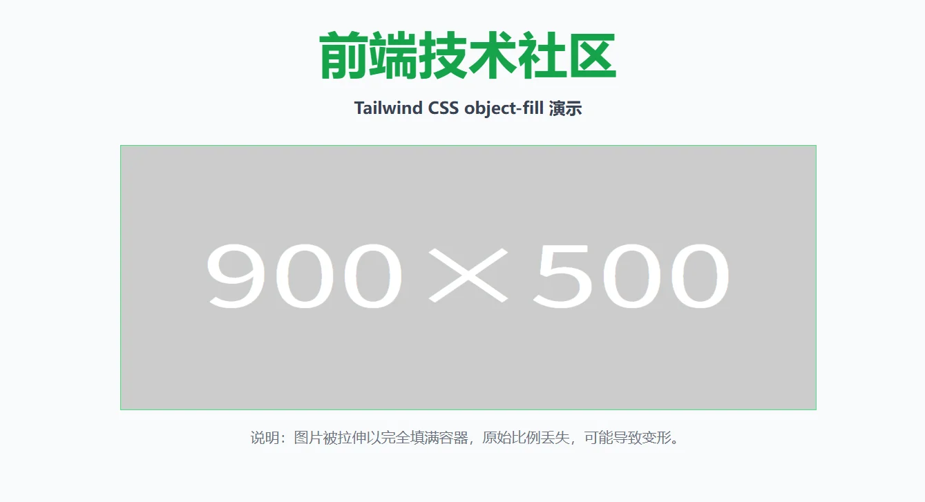 object-fill 类会强制拉伸媒体内容以完全匹配容器的尺寸。这是唯一会破坏原始宽高比的模式,可能导致图片看起来被压扁或拉长。