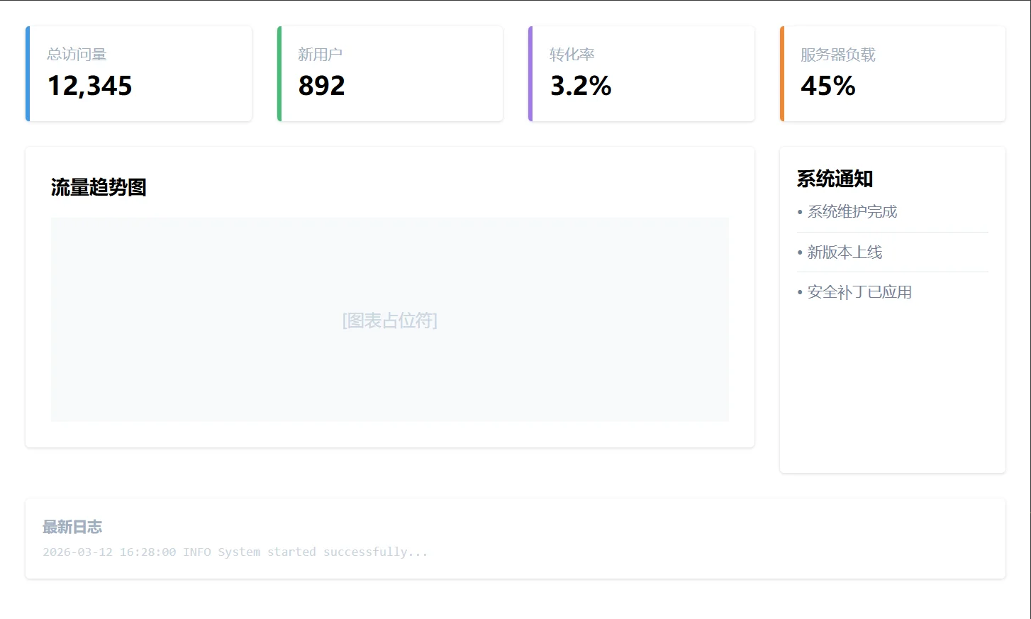 <p class="text-xs font-mono mt-1 text-gray-400">2026-03-12 16:28:00 INFO System started successfully...</p>