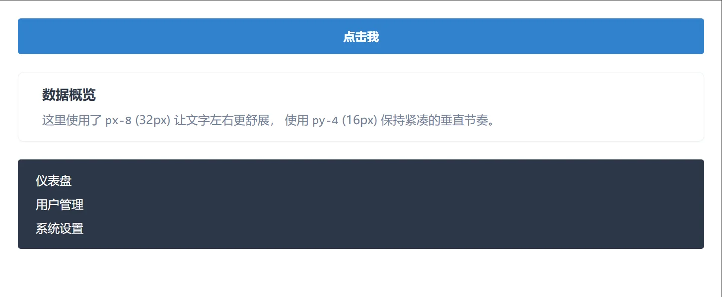 这里使用了 <code>px-8</code> (32px) 让文字左右更舒展,