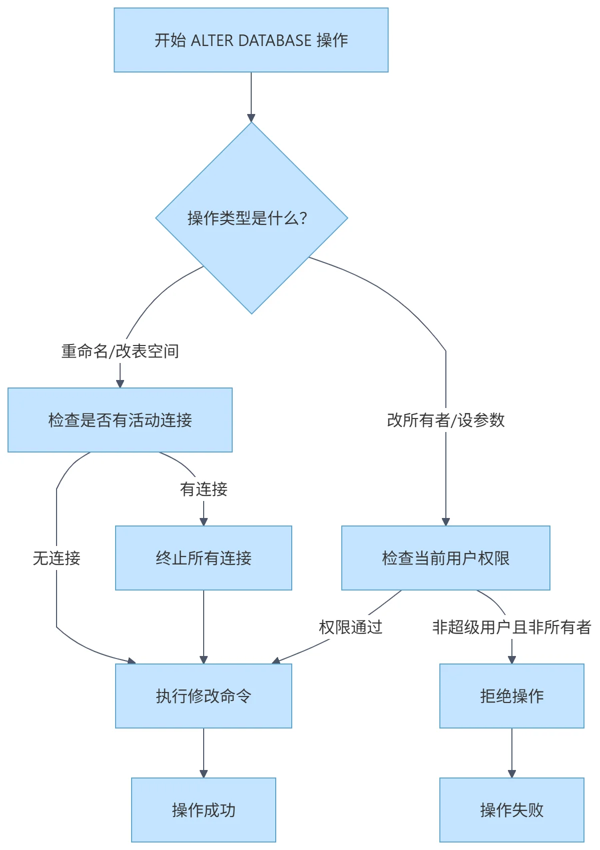 ALTER DATABASE my_renamed_db SET escape_string_warning TO off;在执行 ALTER DATABASE 操作前,请务必关注以下关键点,以避免操作失败或影响生产环境: