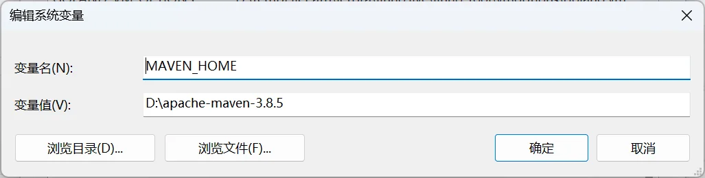 变量值:你的解压路径,例如 D:\DevTools\apache-maven-3.8.6