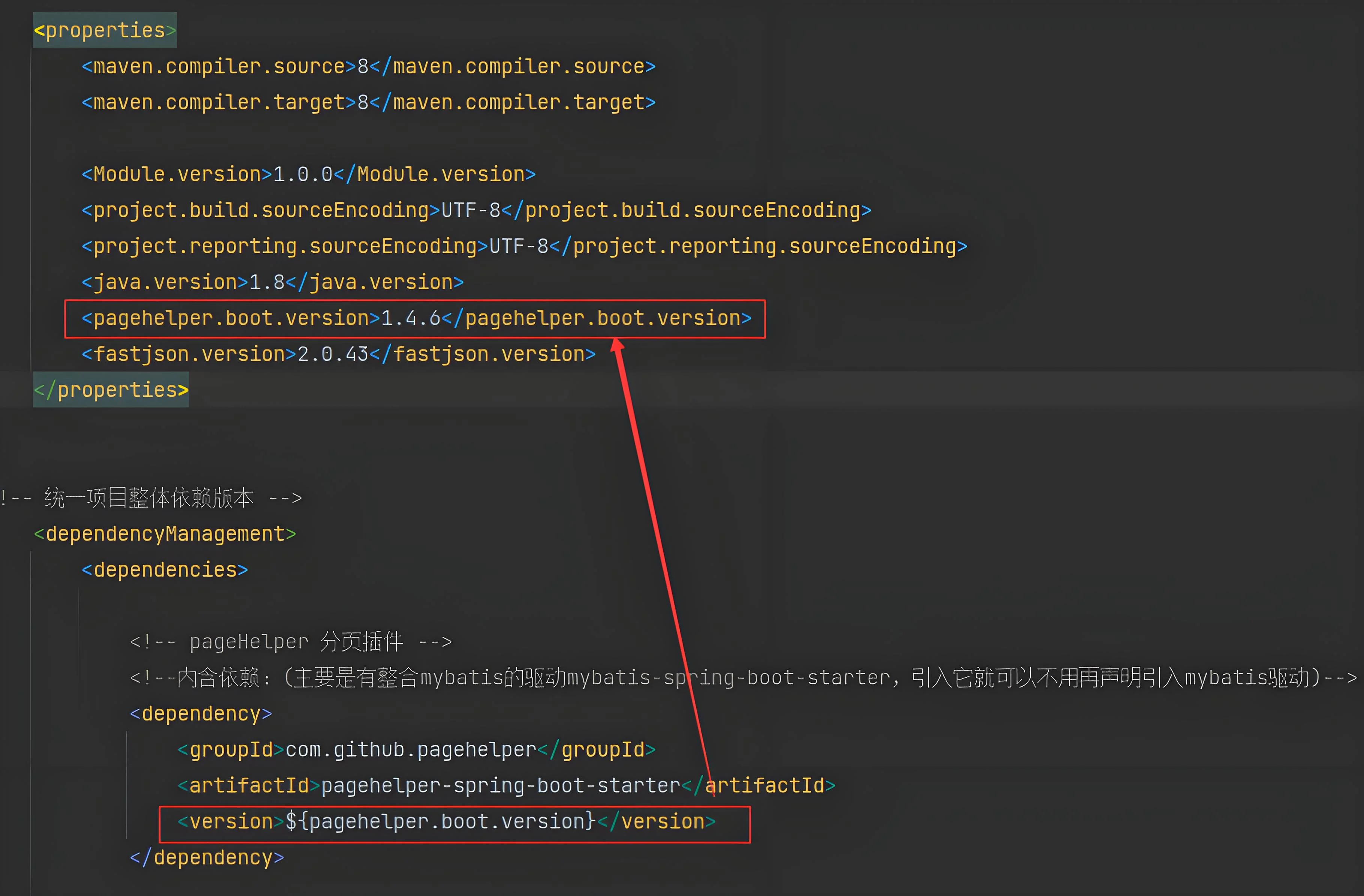 定义位置:通常在父工程的 pom.xml 中定义,以便所有子模块继承。