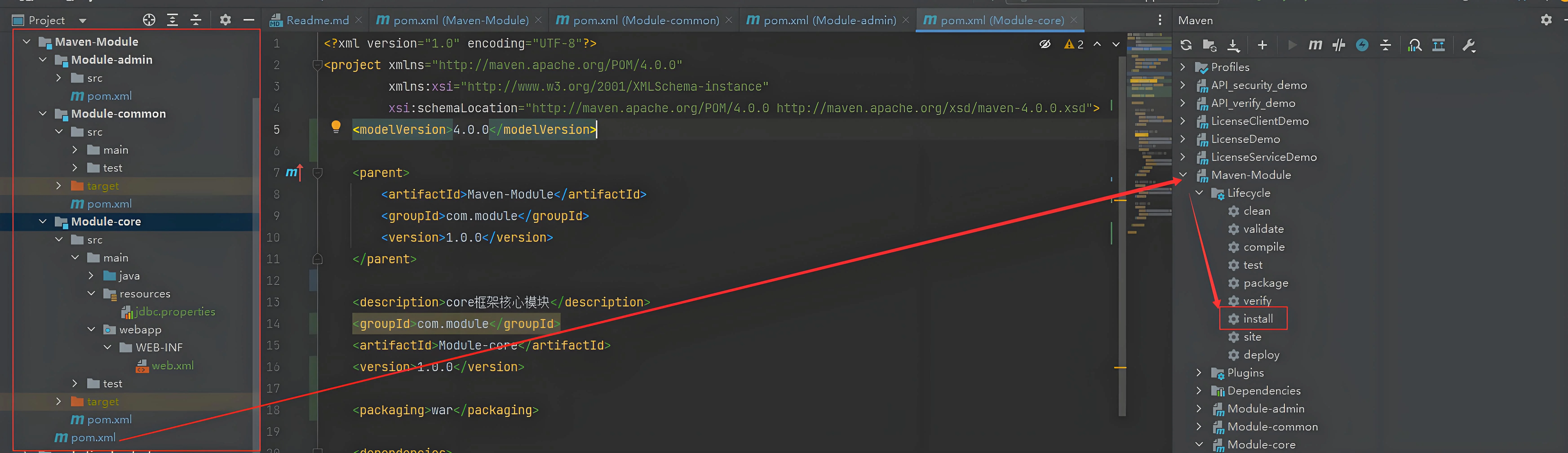 </project>引用方式:使用 ${属性名} 语法。