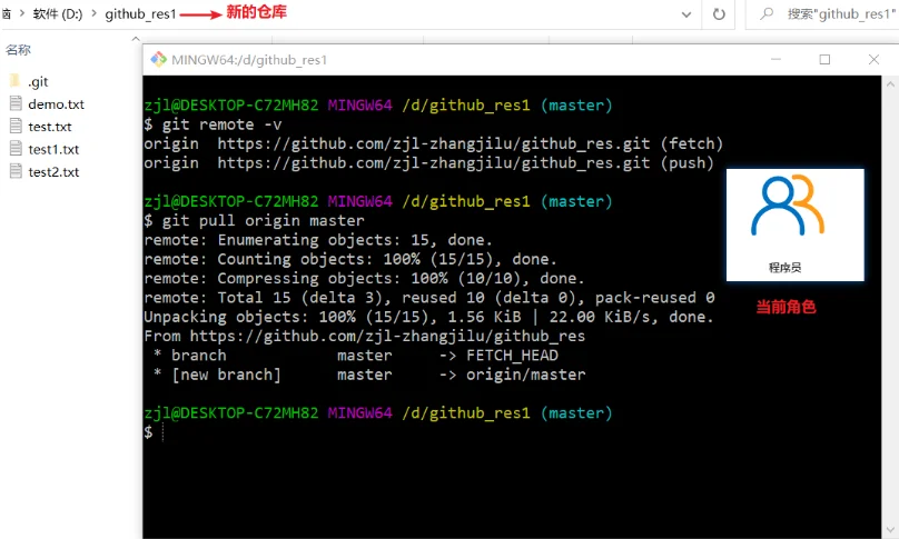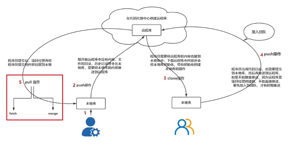 从远程仓库同步文件到本地仓库,本质是 fetch(拉取)和 merge(合并)两步操作。