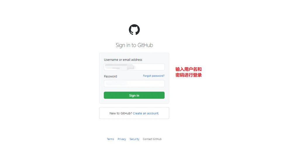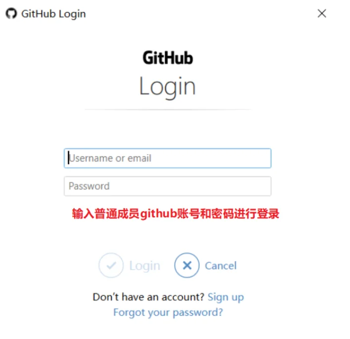 此时会提示输入用户名和密码,需使用团队成员的 GitHub 账号登录
