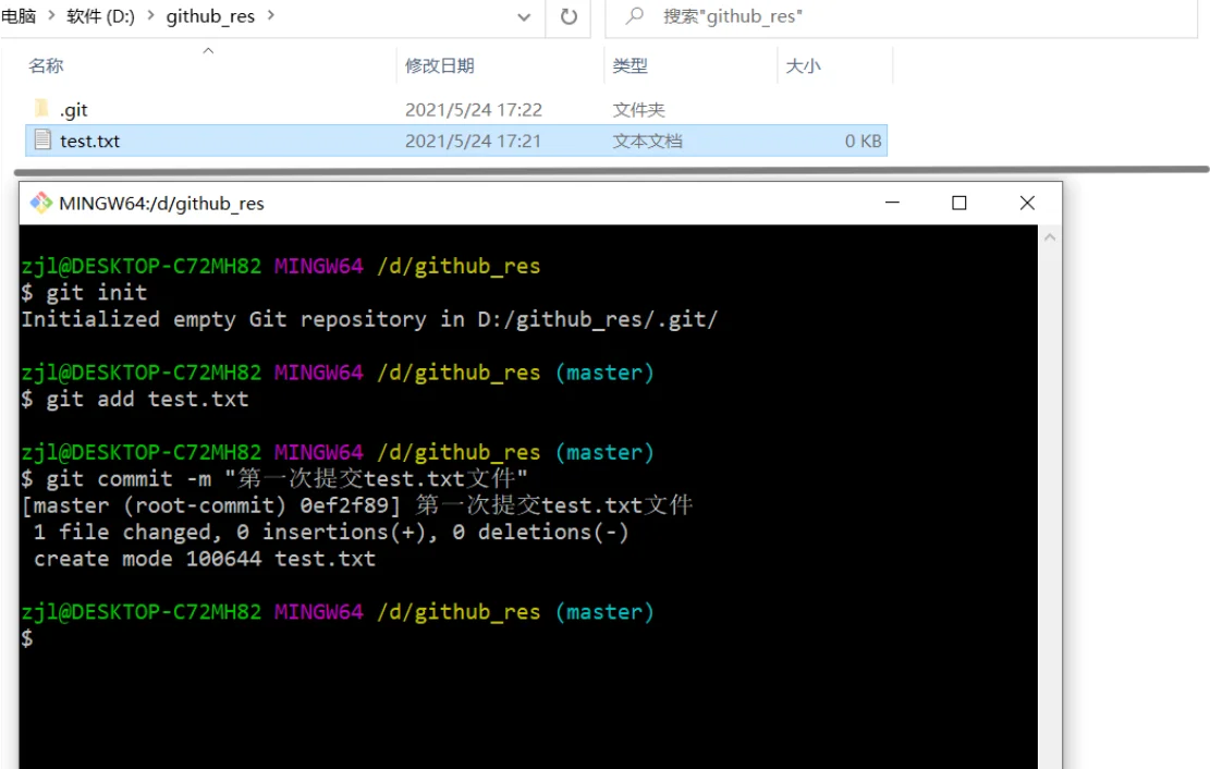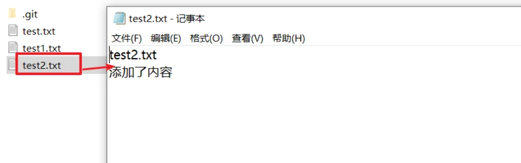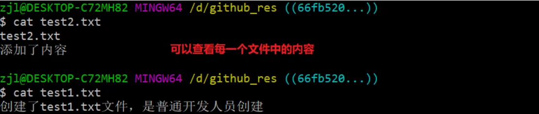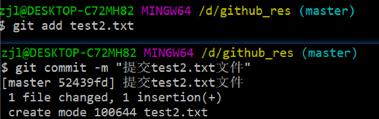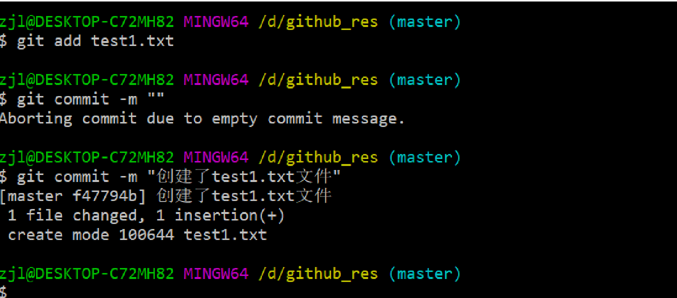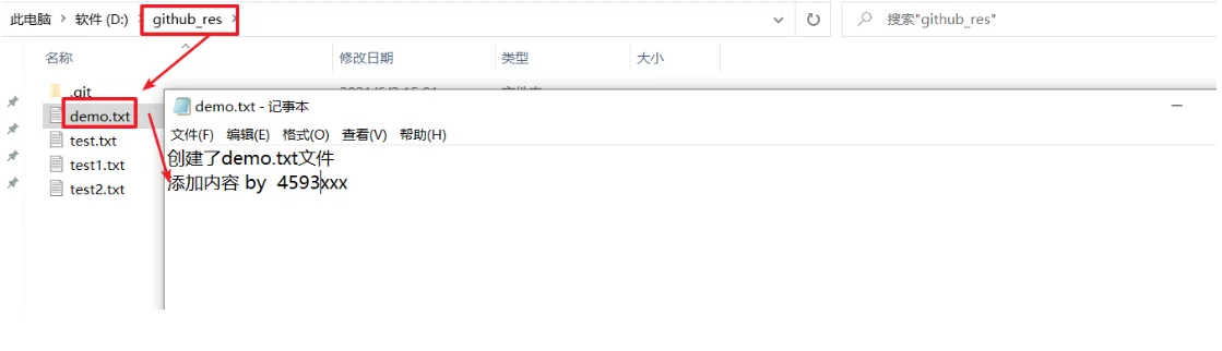 在本地仓库 github_res 中创建 test1.txt 文件并编写内容