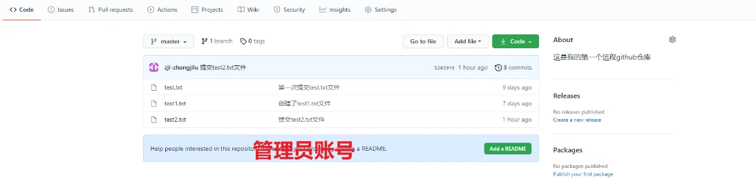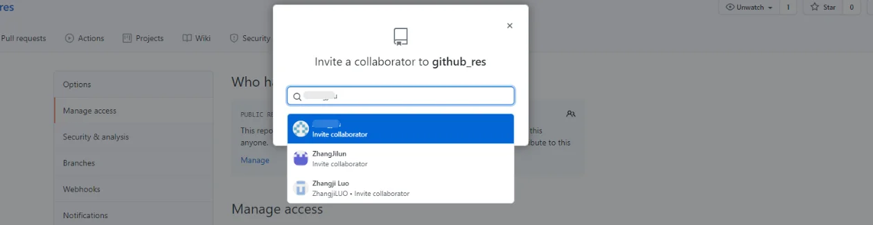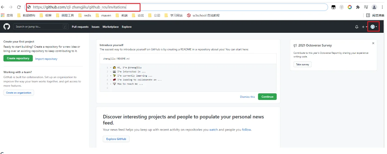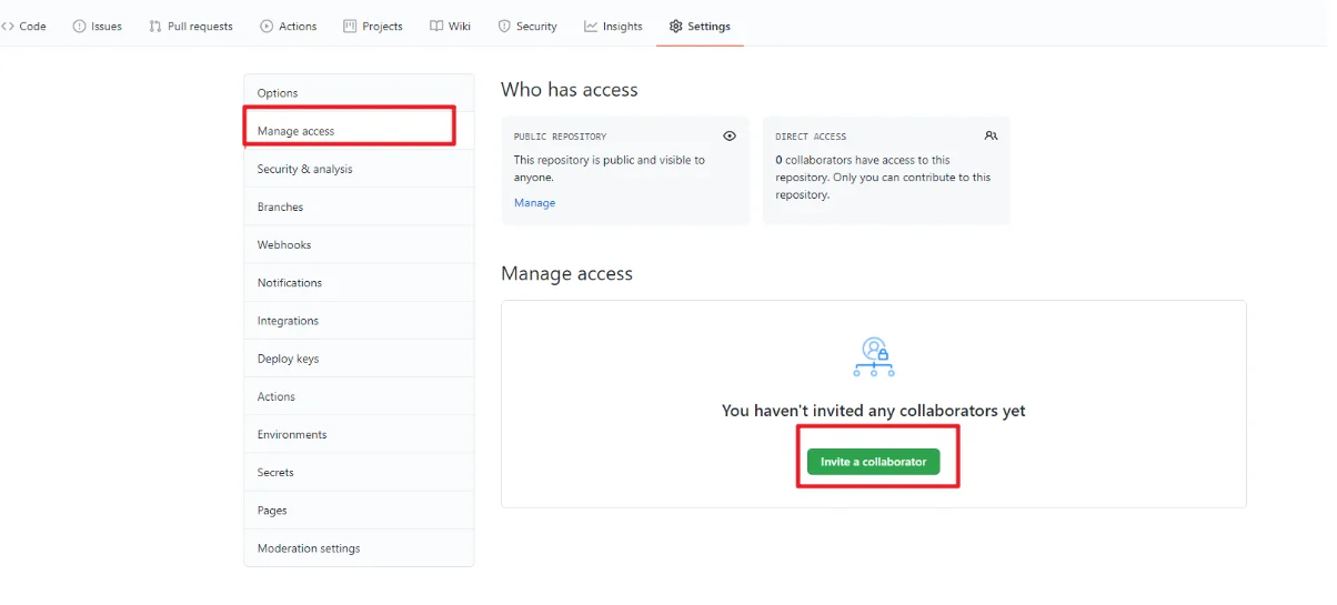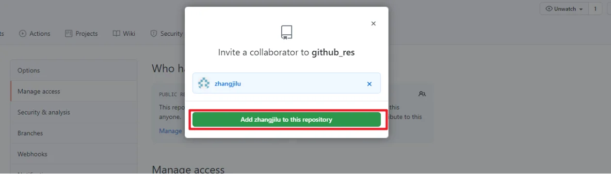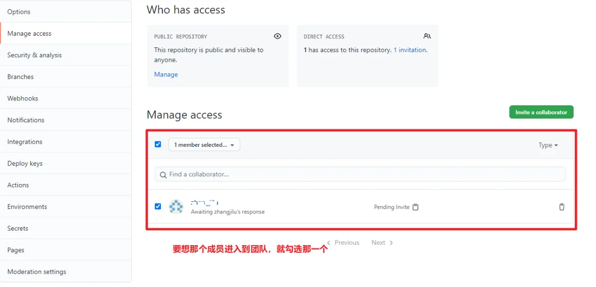 项目经理登录 GitHub 账号,进入仓库邀请成员