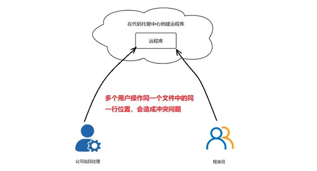 当多个用户同时修改同一个文件的同一行内容并提交时,会产生代码冲突,需要手动解决。