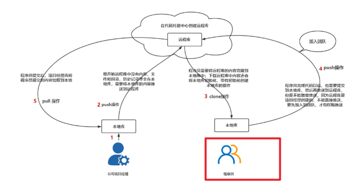 实际开发中以团队为单位进行项目开发,只有加入团队的成员,才有权限向远程仓库提交代码。