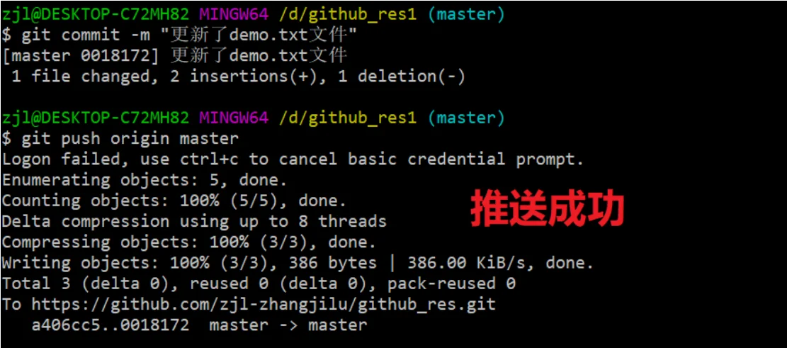 将本地仓库的文件上传到远程仓库,称为推送操作。