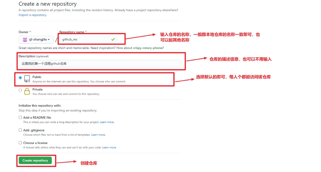 如果不是第一次使用,登录成功后点击右上角 + 号创建仓库