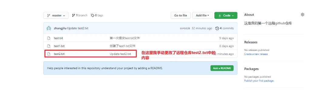 刷新 GitHub 仓库页面,可查看已同步的本地内容