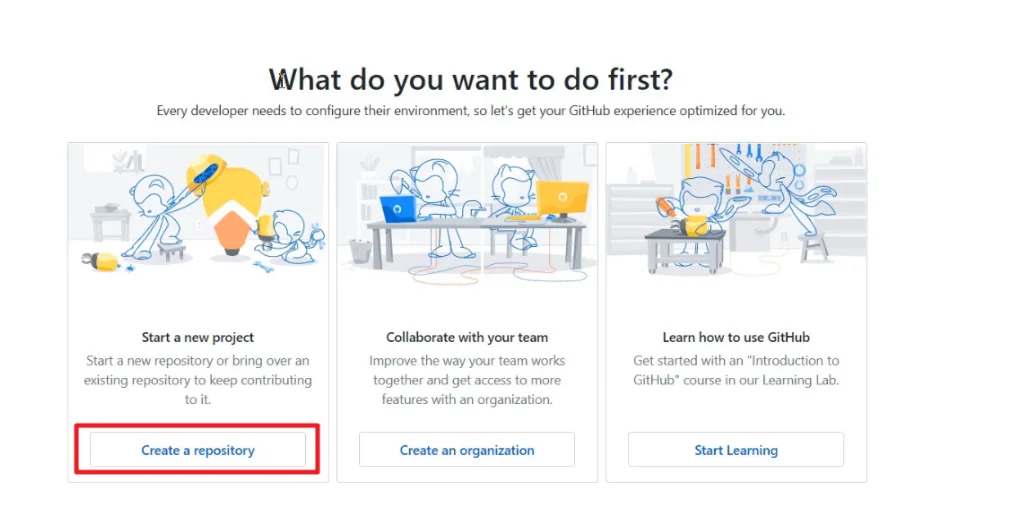 如果是第一次使用 GitHub,需要登录注册邮箱完成账号验证,验证完成后,在引导界面选择创建第一个仓库