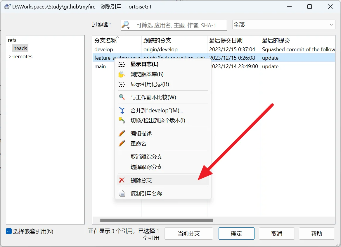 开发完成后合并回 develop 分支,废弃无用的功能分支可直接删除。