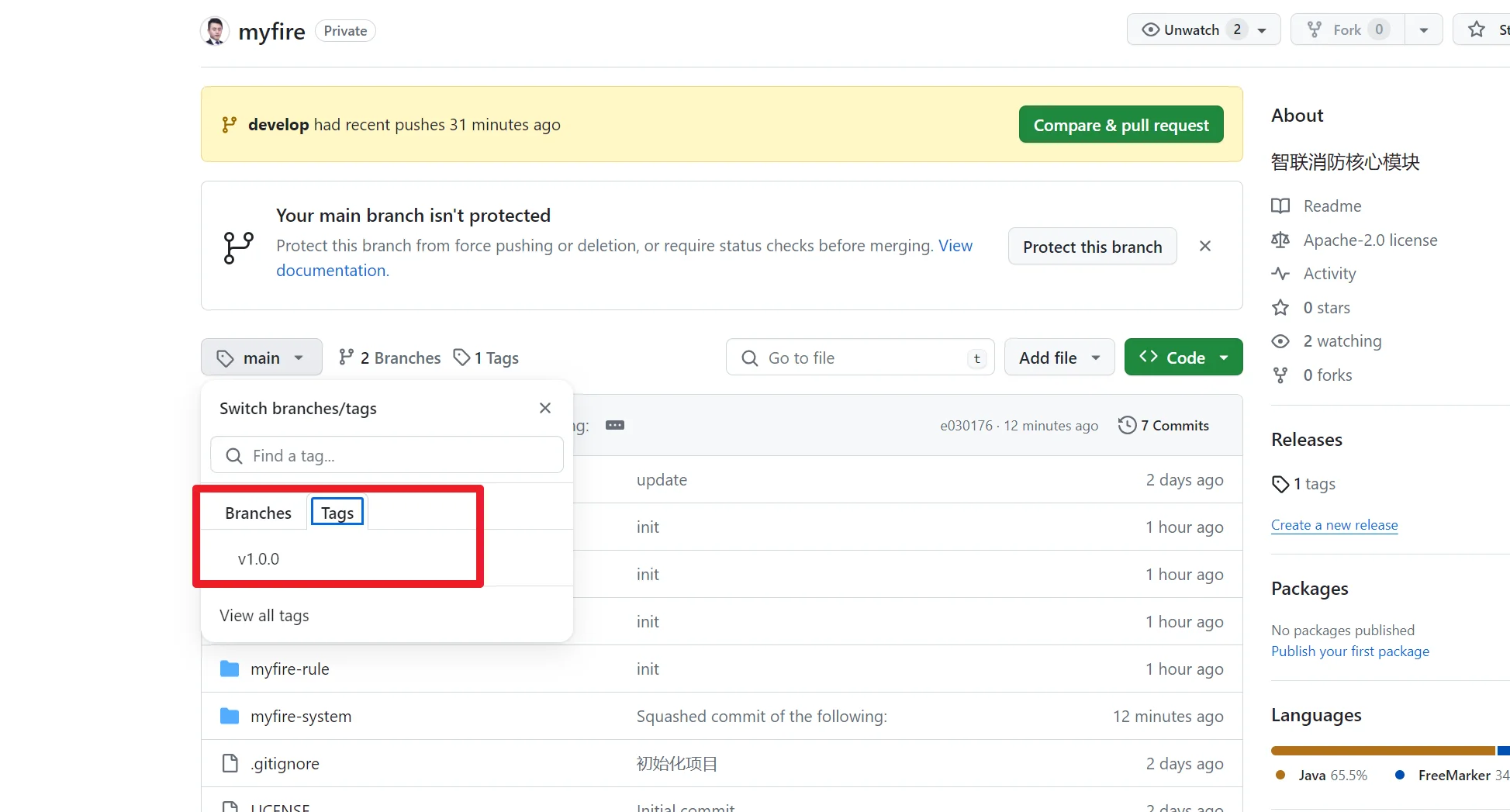 每次版本发布后,都需要在 master 上打版本标签(Tag)。