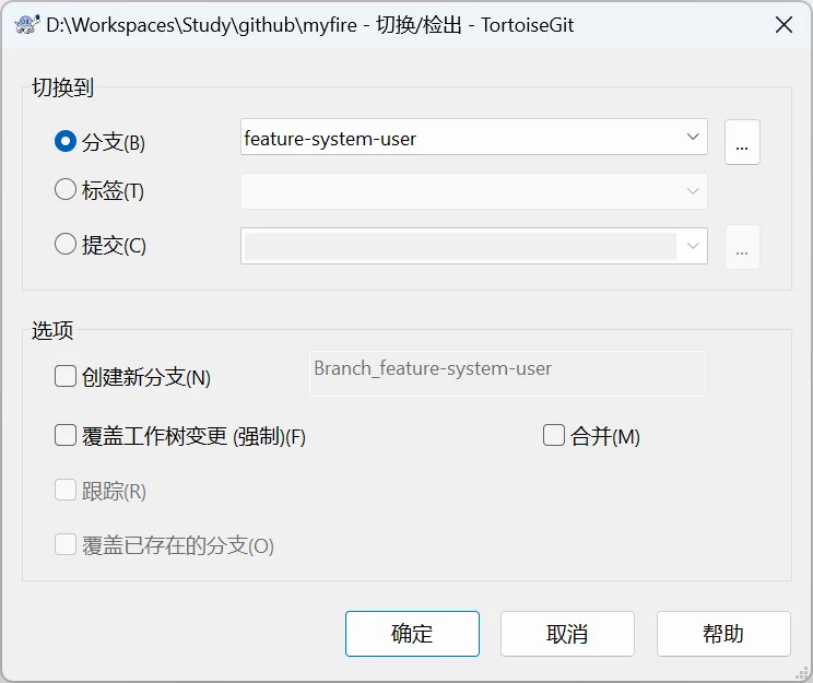 git commit -m "功能开发说明"切换到功能分支开始开发。