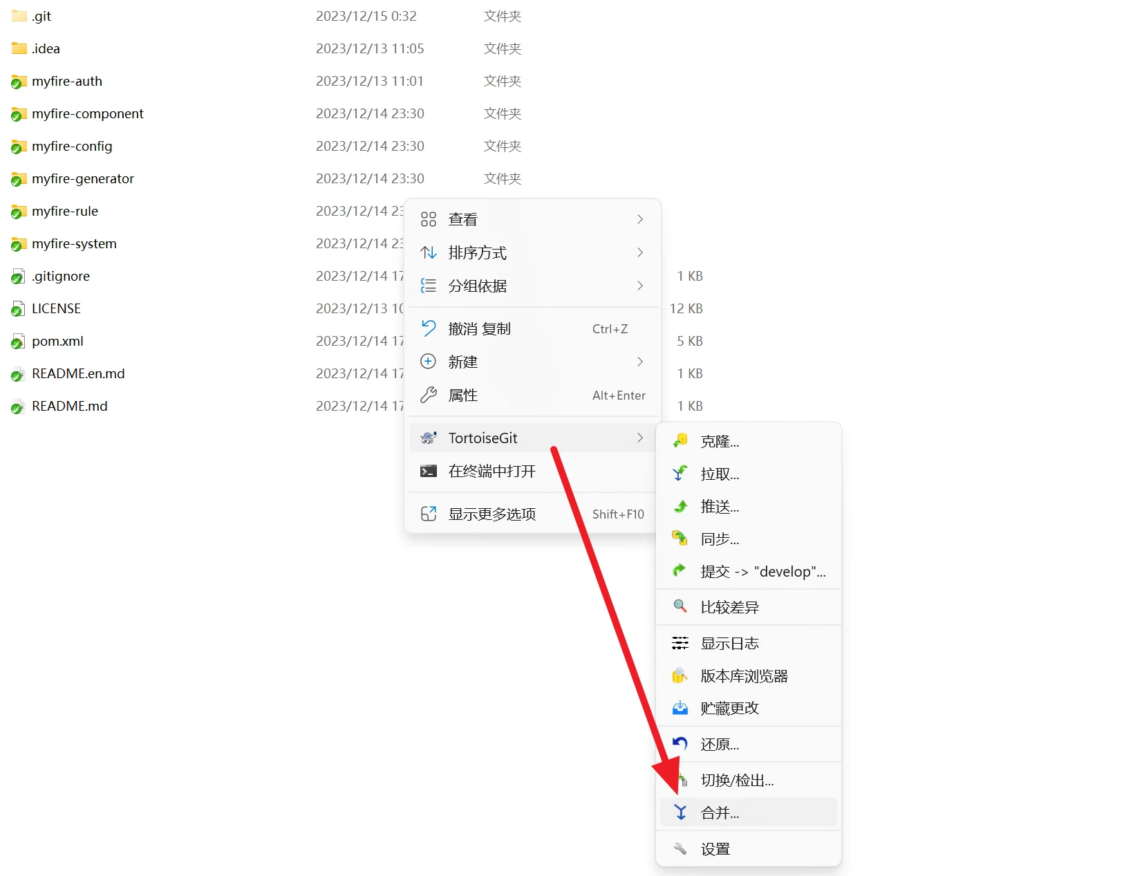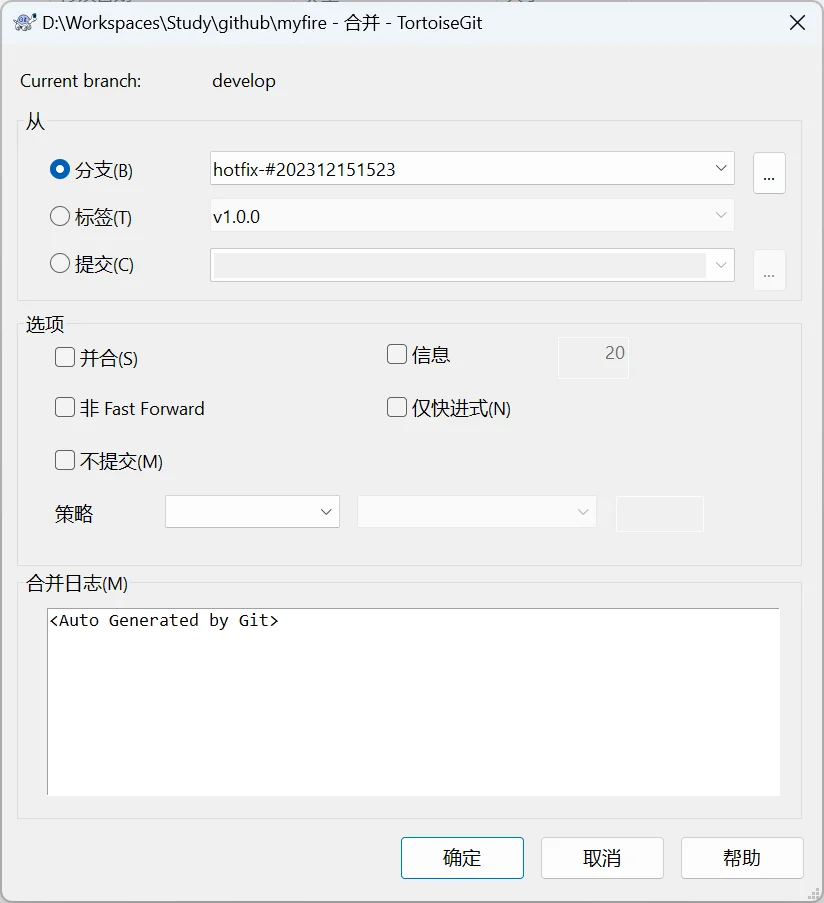 功能开发完毕后,先同步远程最新代码,再合并到 develop:
