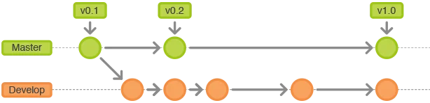 master 仅用于保存历史发布版本,通过 Tag 标记版本号,如 v 0.1、v 0.2。