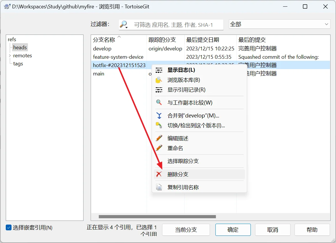 git branch -d release/0.1.0# 从 master 创建 hotfix 分支